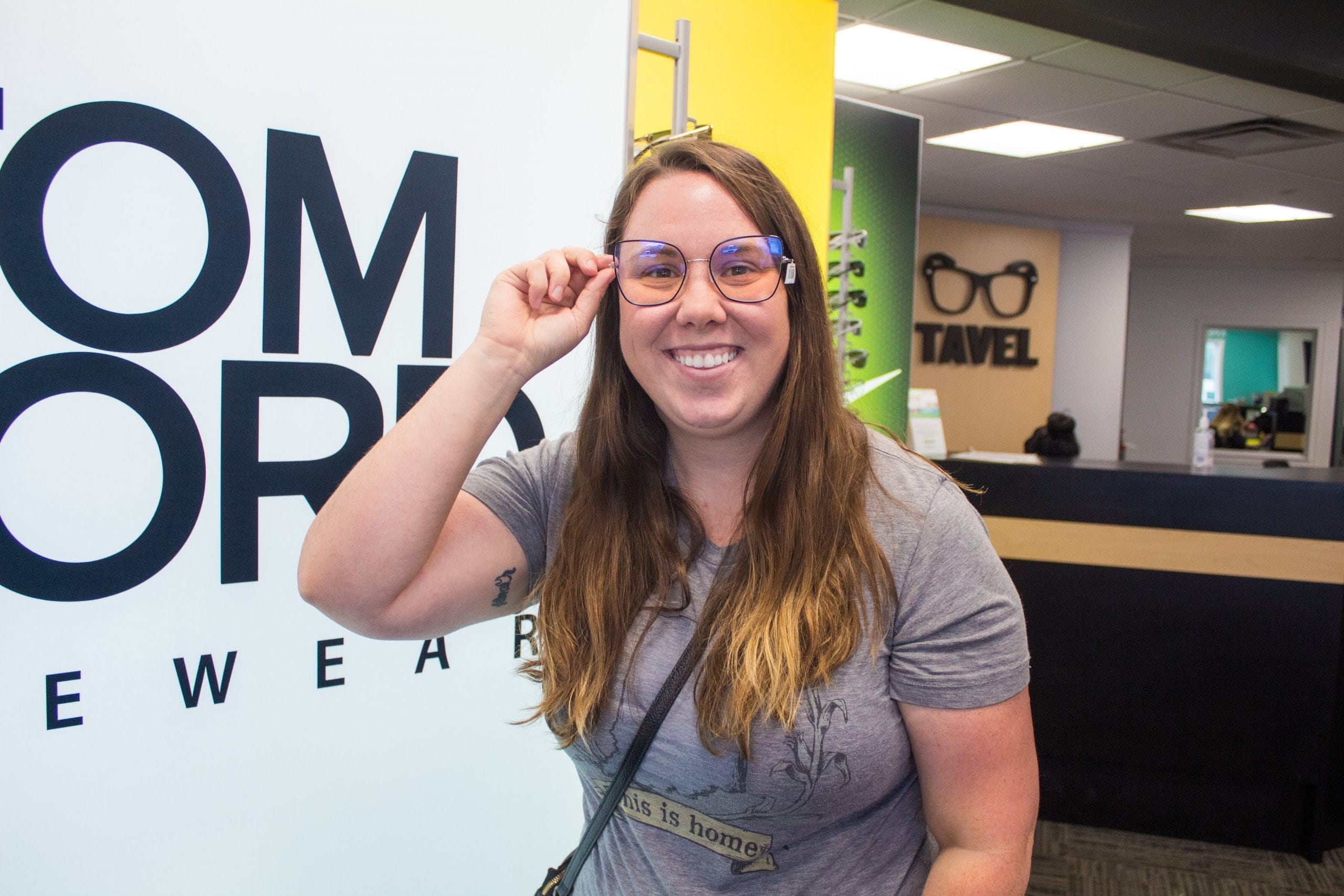 If our optometrists find out you need a prescription, or that your prescription has changed, you will get to check out our wide variety of frame options. Even though Stephanie hadn’t worn glasses before, she was experiencing symptoms of digital eye strain. Our eye doctor found that one eye showed a small prescription for myopia and the other eye suffered from slight astigmatism. To help alleviate digital eye strain, she opted for Kodak power up lenses, with added blue light protection.